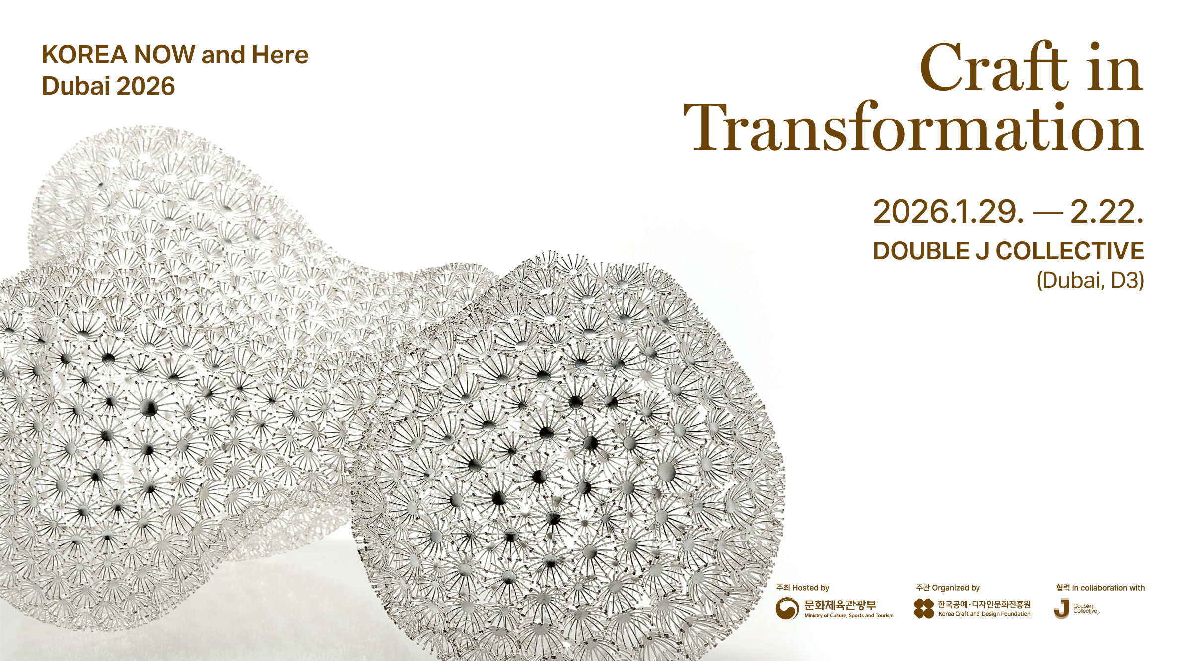 한국공예·디자인문화진흥원은 두바이 디자인 디스트릭트(d3)에 위치한 공예 전문 공간 더블제이 컬렉티브 갤러리(Double J Collective Gallery)와 협력하여 한국공예전 《Craft in Transformation》을 개최한다. 이번 전시는 도자, 금속, 유리, 섬유, 옻칠, 가죽, 장신구 등 다양한 분야에서 활동하는 한국 공예 작가 20인의 작품을 통해 오늘날 한국공예의 모습을 선보인다.