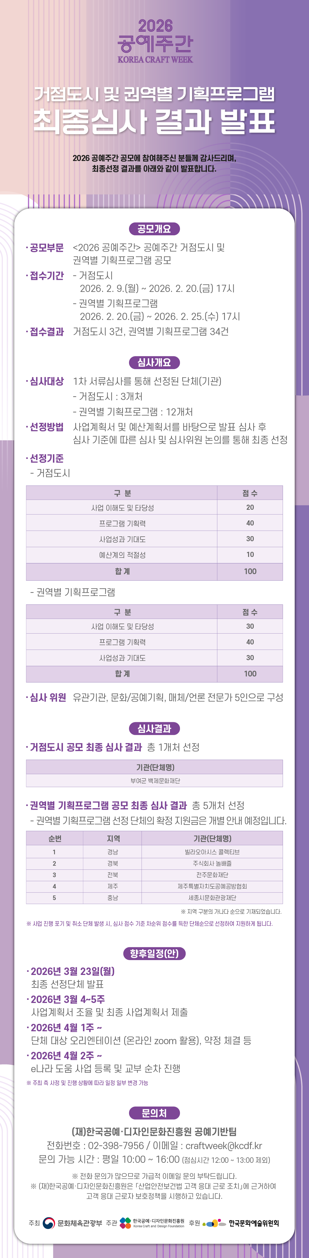 [결과발표] 2026 공예주간 거점도시 및 권역별 기획 프로그램 결과 발표