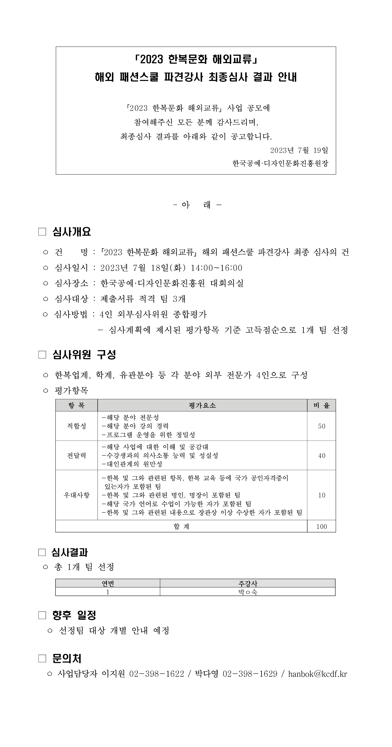 [공고문] 2023 한복문화 해외교류 해외 패션스쿨 파견강사 선정 결과.pdf