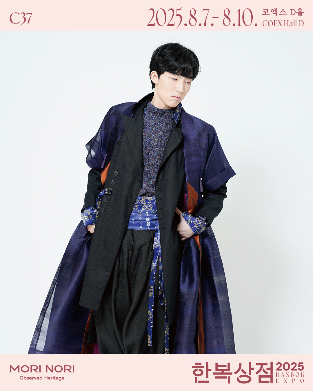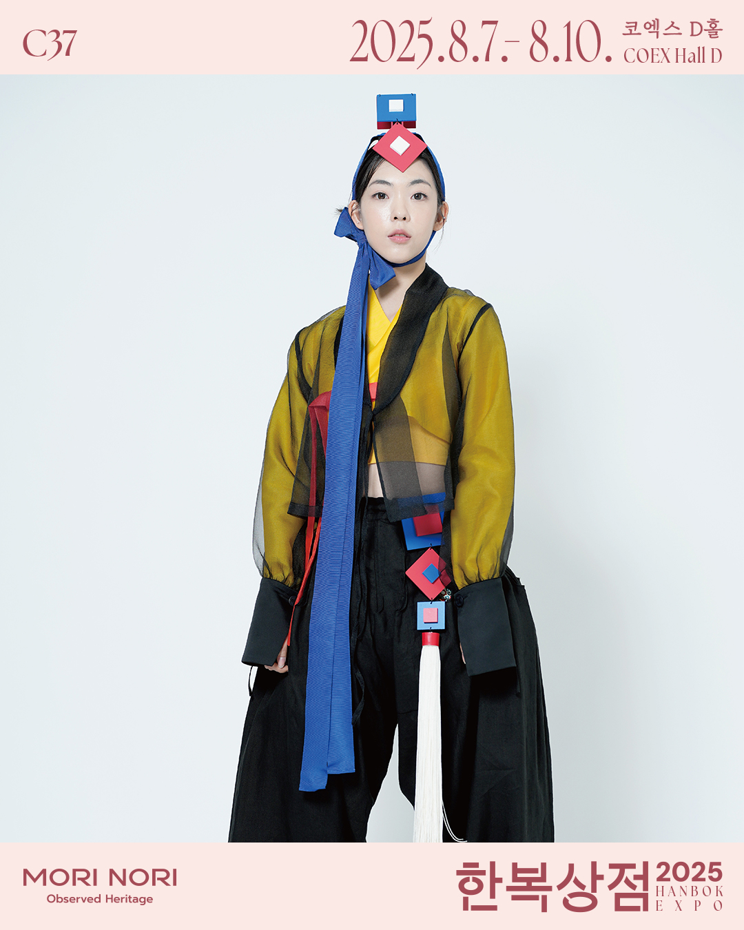 모리노리는 자진모리의 ‘모리’와 ‘놀이’의 영어발음인 ‘노리’의 합성어로, 자진모리처럼 빠르고 경쾌한 자기 주도적 삶을 즐기는 사람들의 옷을 만듦으로써 “전통에 입혀진 현재, 현재에 입혀진 미래”를 은유합니다.