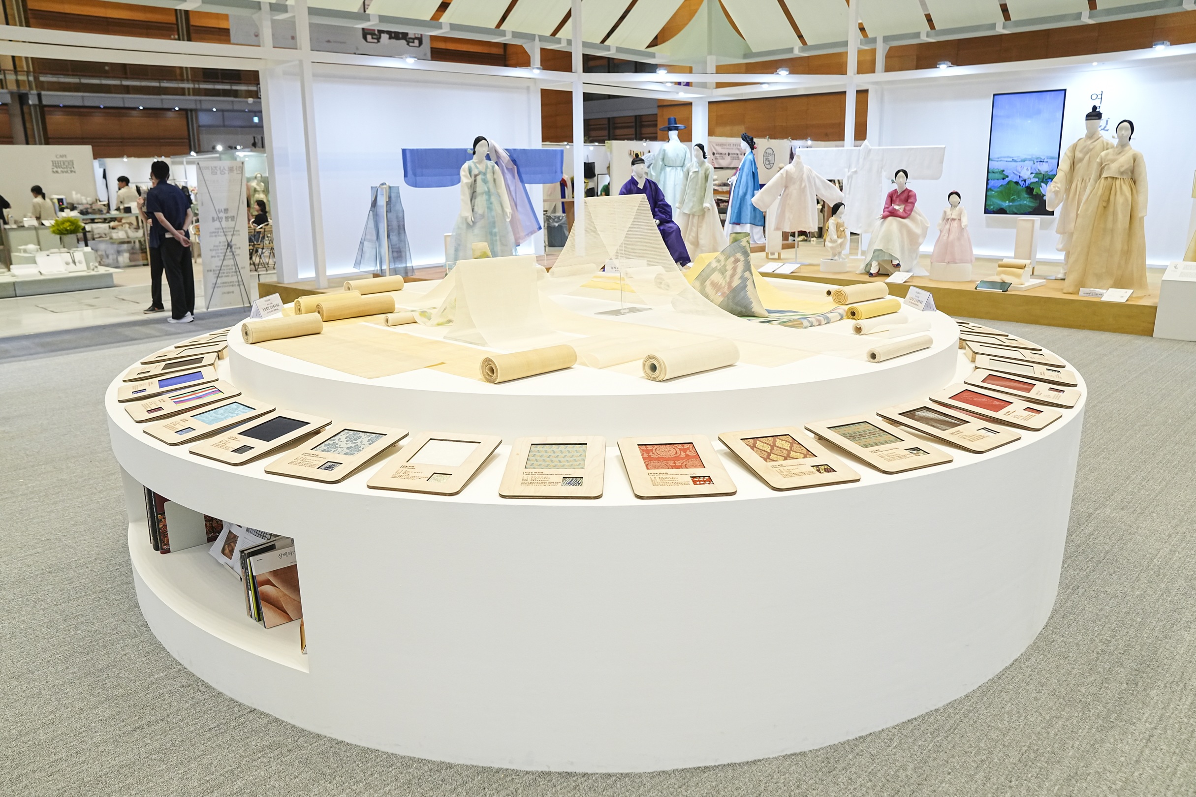 특히 전통섬유전공 학생들이 제직한 전통 모시, 춘포, 교직물과 함께 은조사·항라 등 다양한 사직물, 문직기로 짠 여러 문단 직물들이 전시되며, 전통섬유복원연구소에서 수년간의 연구 끝에 복원한 금사와 직금(織金), 고대 직물인 경금(經錦), 위금(緯錦), 라(羅) 등도 함께 선보입니다.