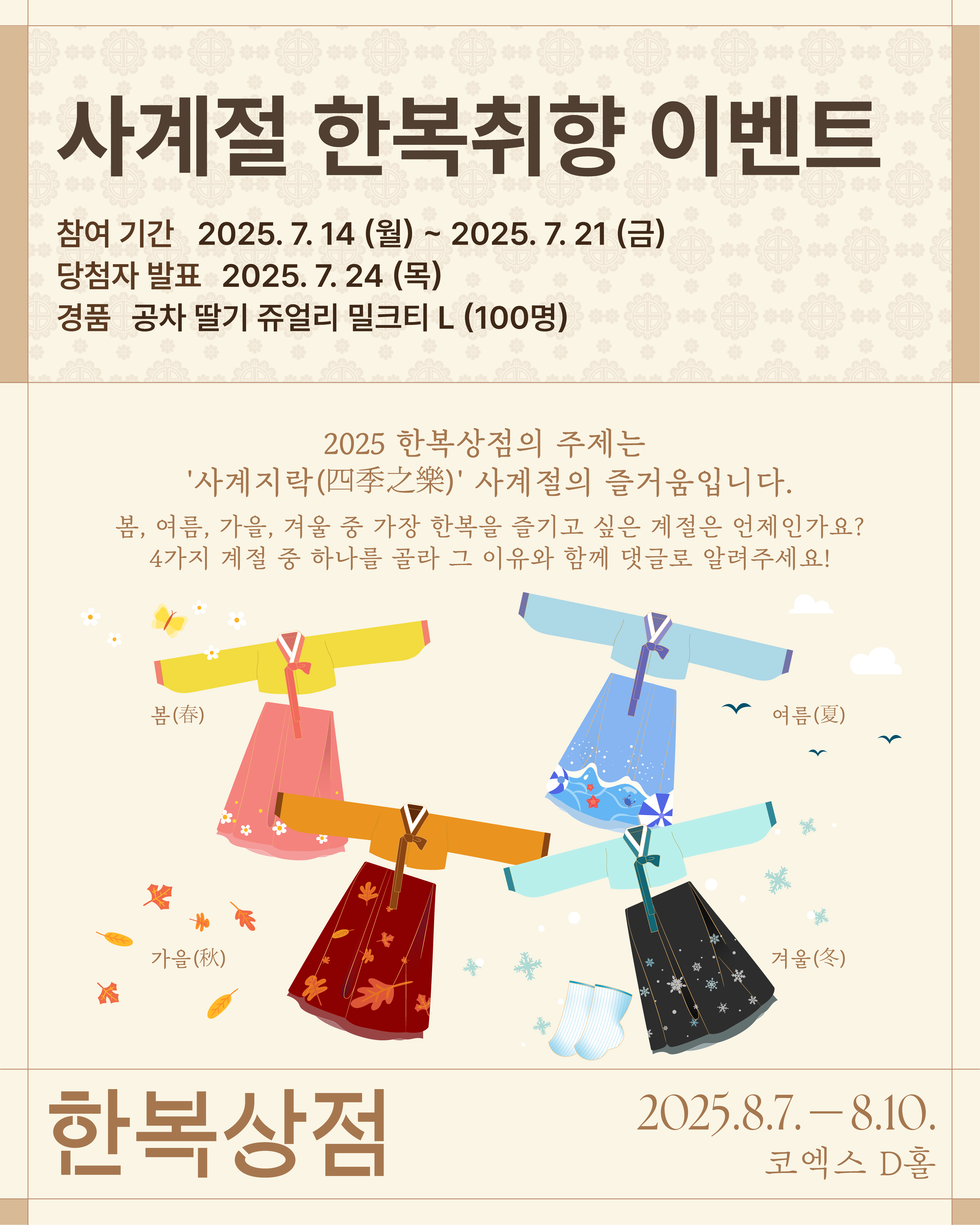 다가오는 8월, 코엑스에서 열리는 '2025 한복상점'에도 많은 기대와 관심 부탁드립니다.