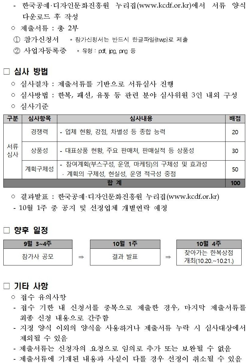 ㅇ 심사방법 : 한복, 패션, 유통 등 관련 분야 심사위원 3인 내외 구성
