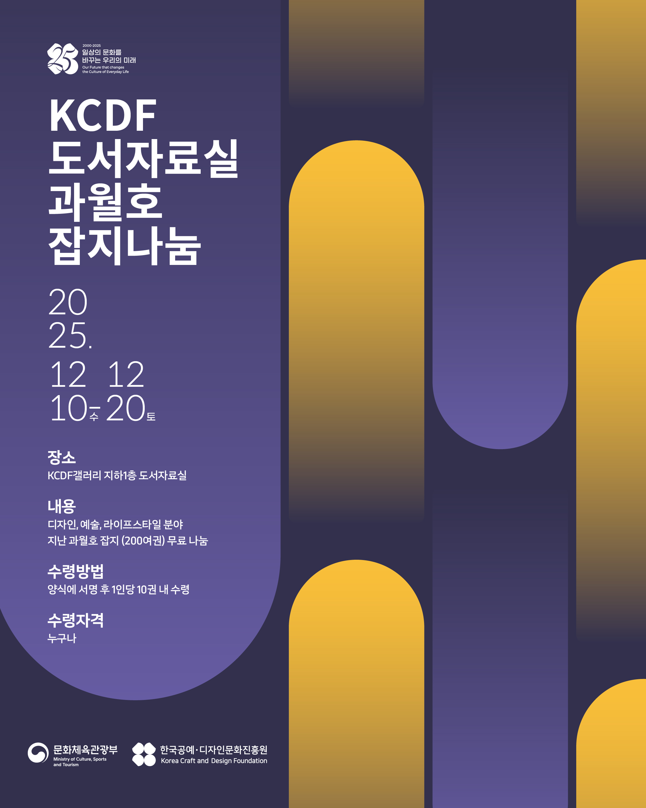 KCDF도서자료실에서 2025 과월호 잡지 나눔전을 진행합니다.