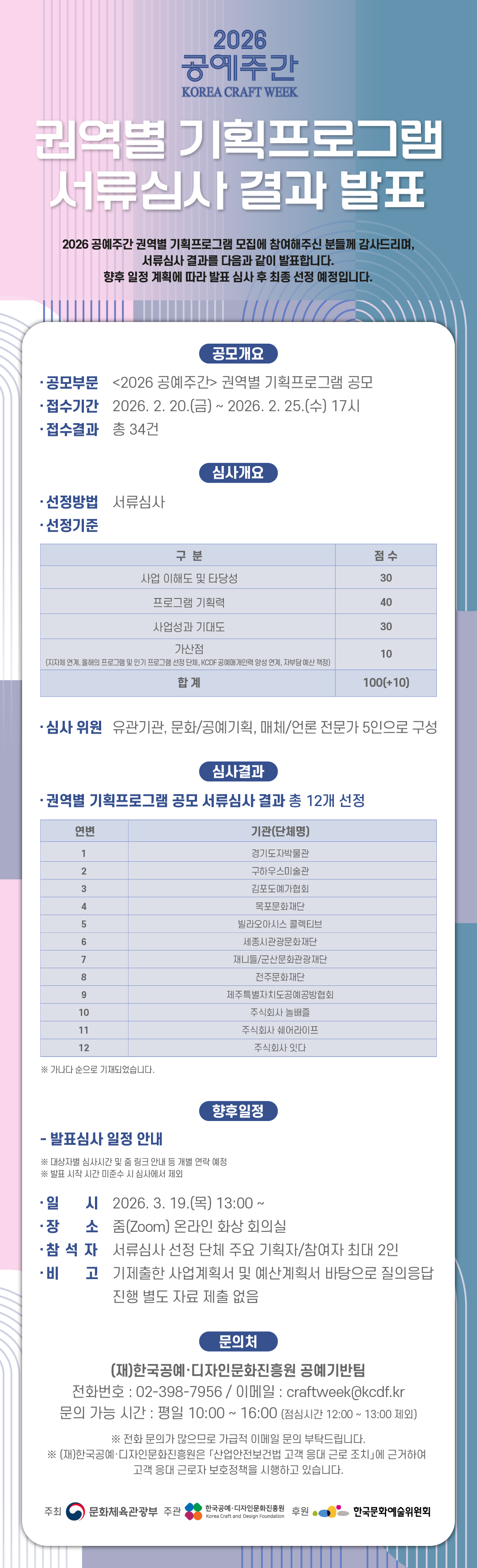 [결과발표] 2026 공예주간 권역별 기획프로그램 서류 심사 결과 발표