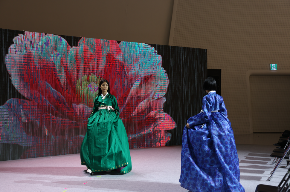 《시간의 궤적: 한복》은 한복과 디지털 기술을 결합한 융복합 패션쇼입니다.