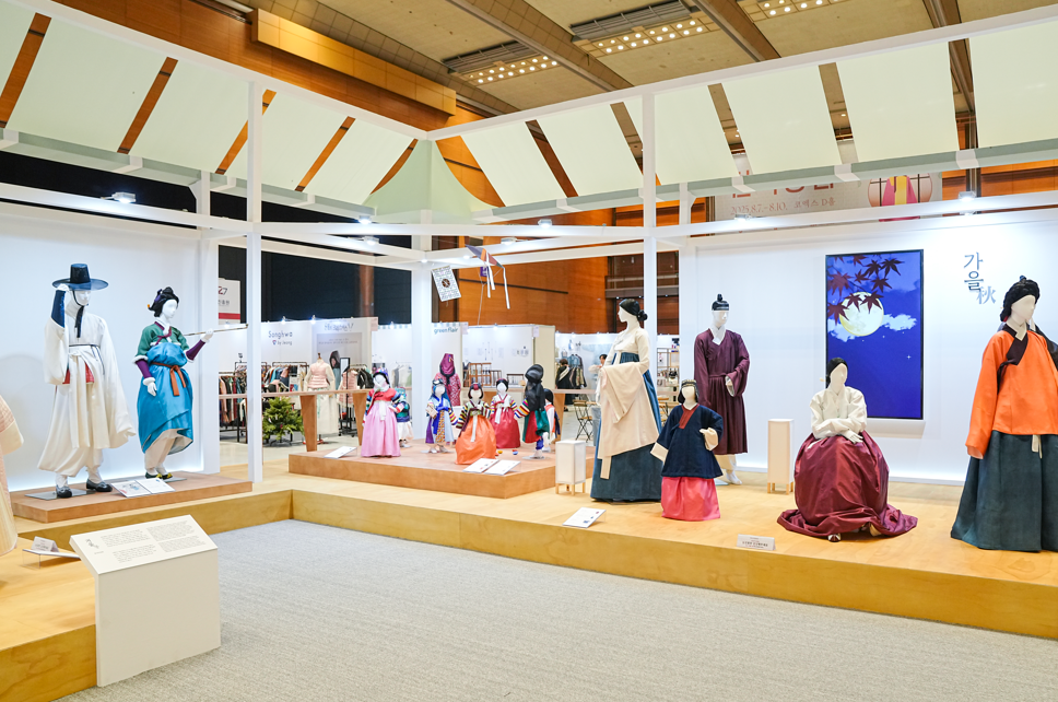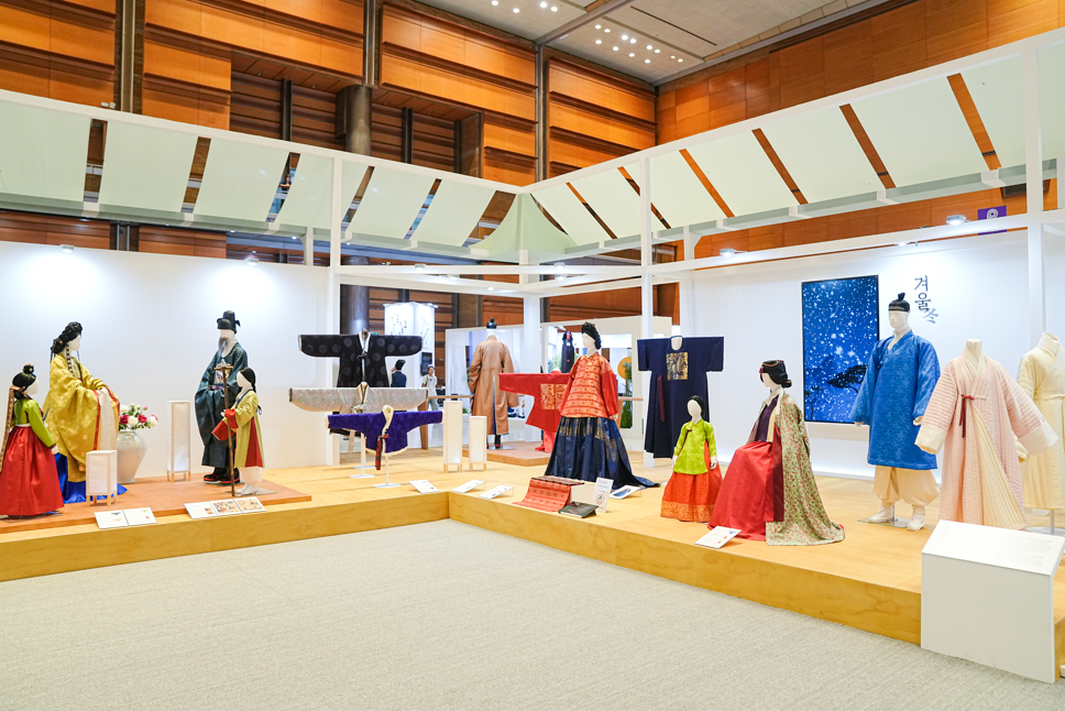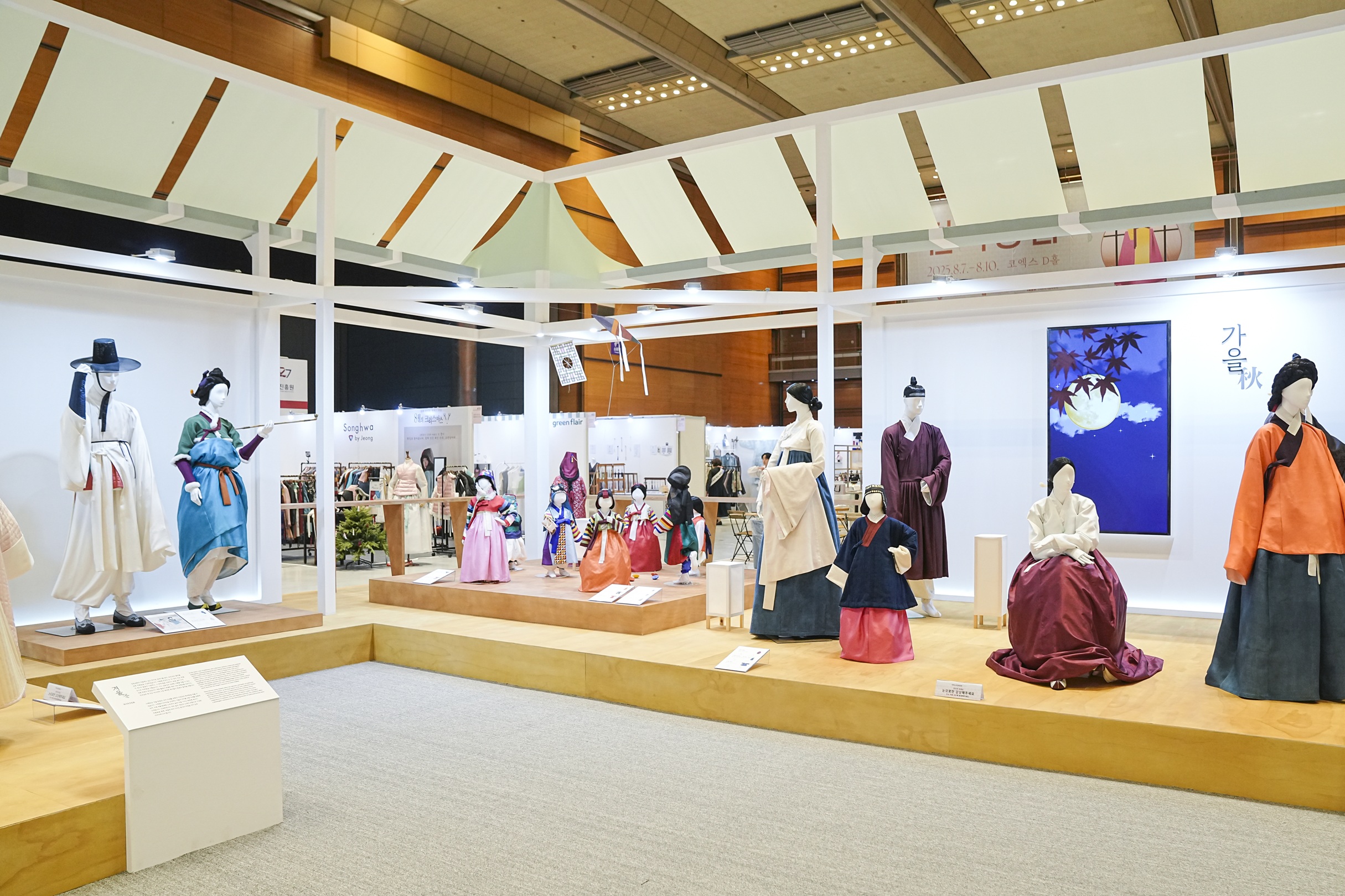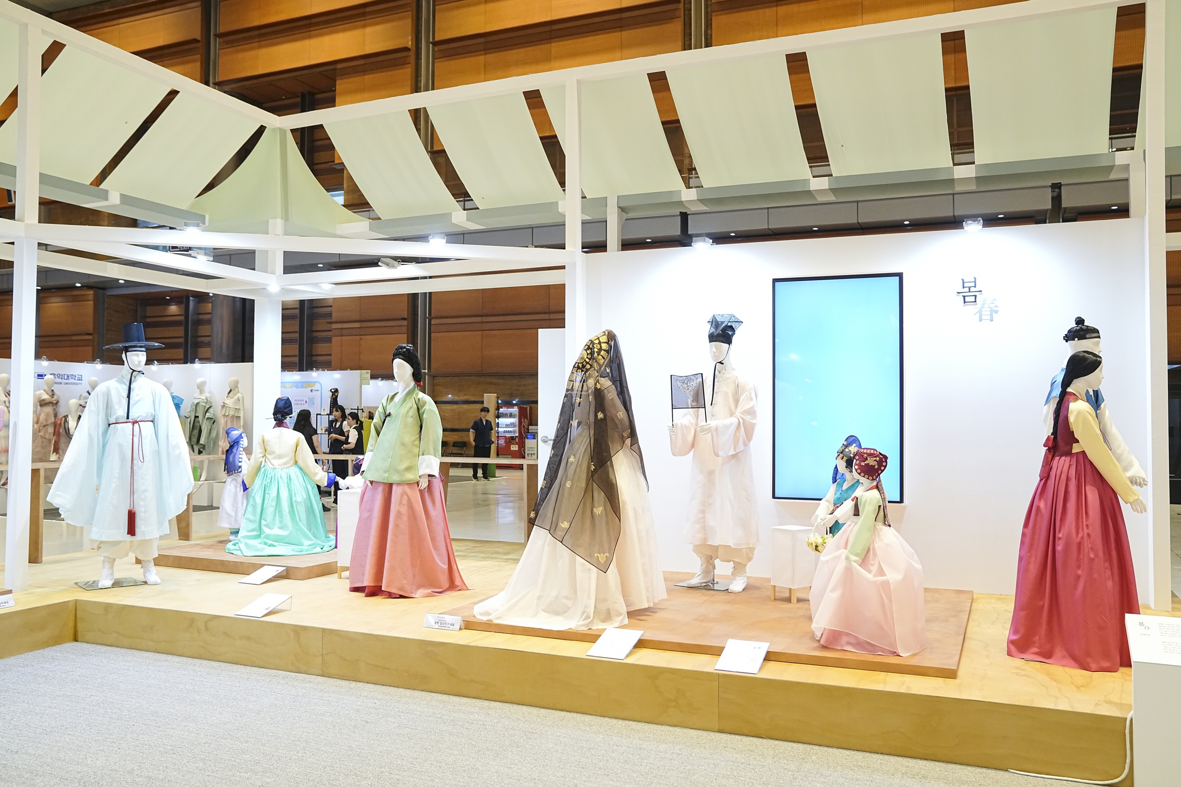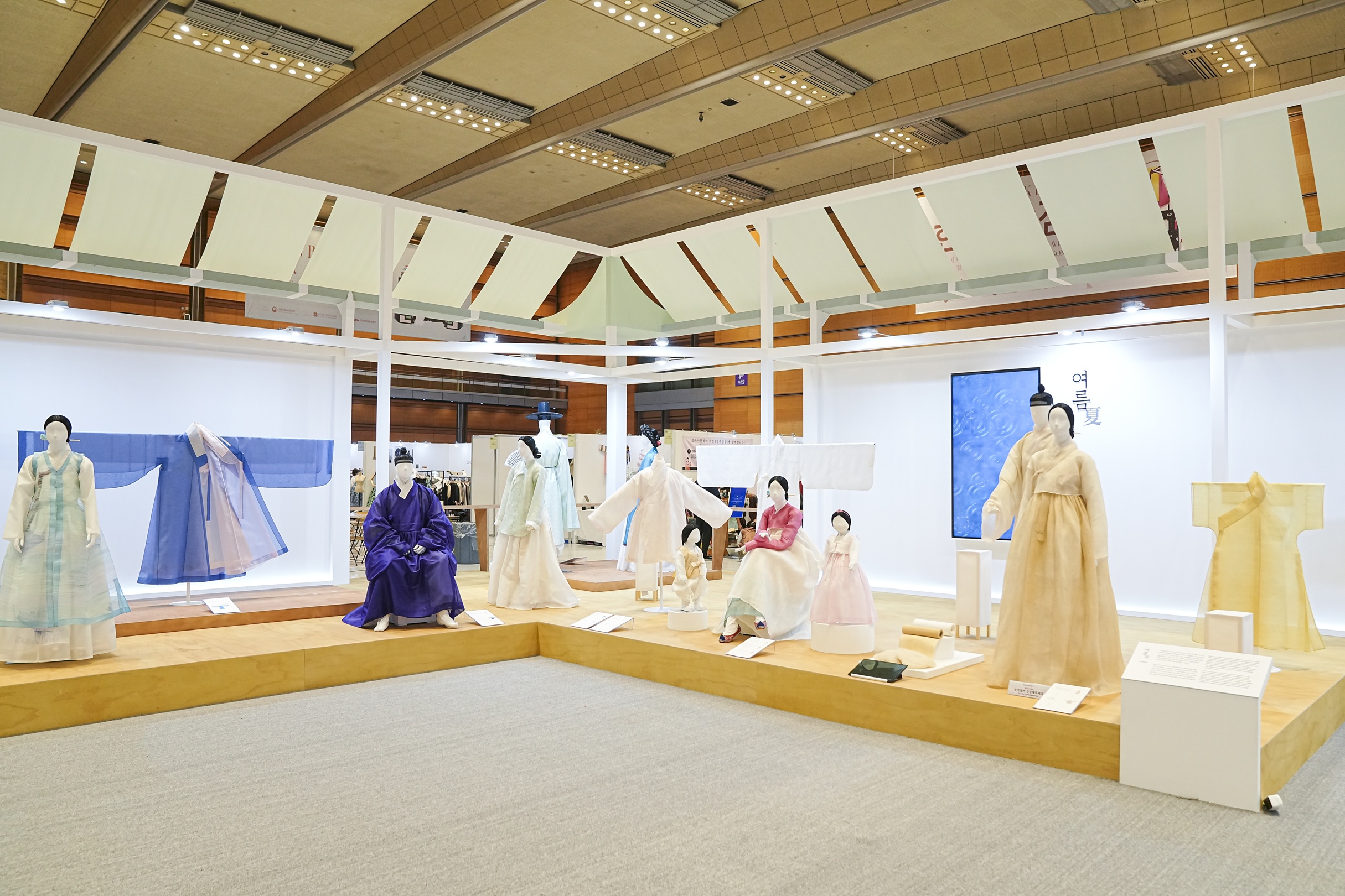 전시 작품은 한국전통문화대학교 ‘전통미술공예학과 전통섬유전공’과 ‘전통섬유복원연구소’가 함께 준비하고, 교수진, 학생, 졸업생들이 참여해 한국의 전통섬유문화를 국내외에 온전히 알리고자 정성을 다했습니다. 전시 작품의 대부분은 학교에서 직접 재현·직조한 옷감을 사용하였으며, 복식 구성은 유물 고증을 바탕으로 손바느질로 제작되었습니다. 단순한 형상 재현을 넘어, 한복이 일상이던 시대의 정신문화와 미적 감수성을 담아내고자 하였으며, 동시에 현대적 미감을 더한 작품을 통해 한복문화의 새로운 가능성도 제안합니다.
