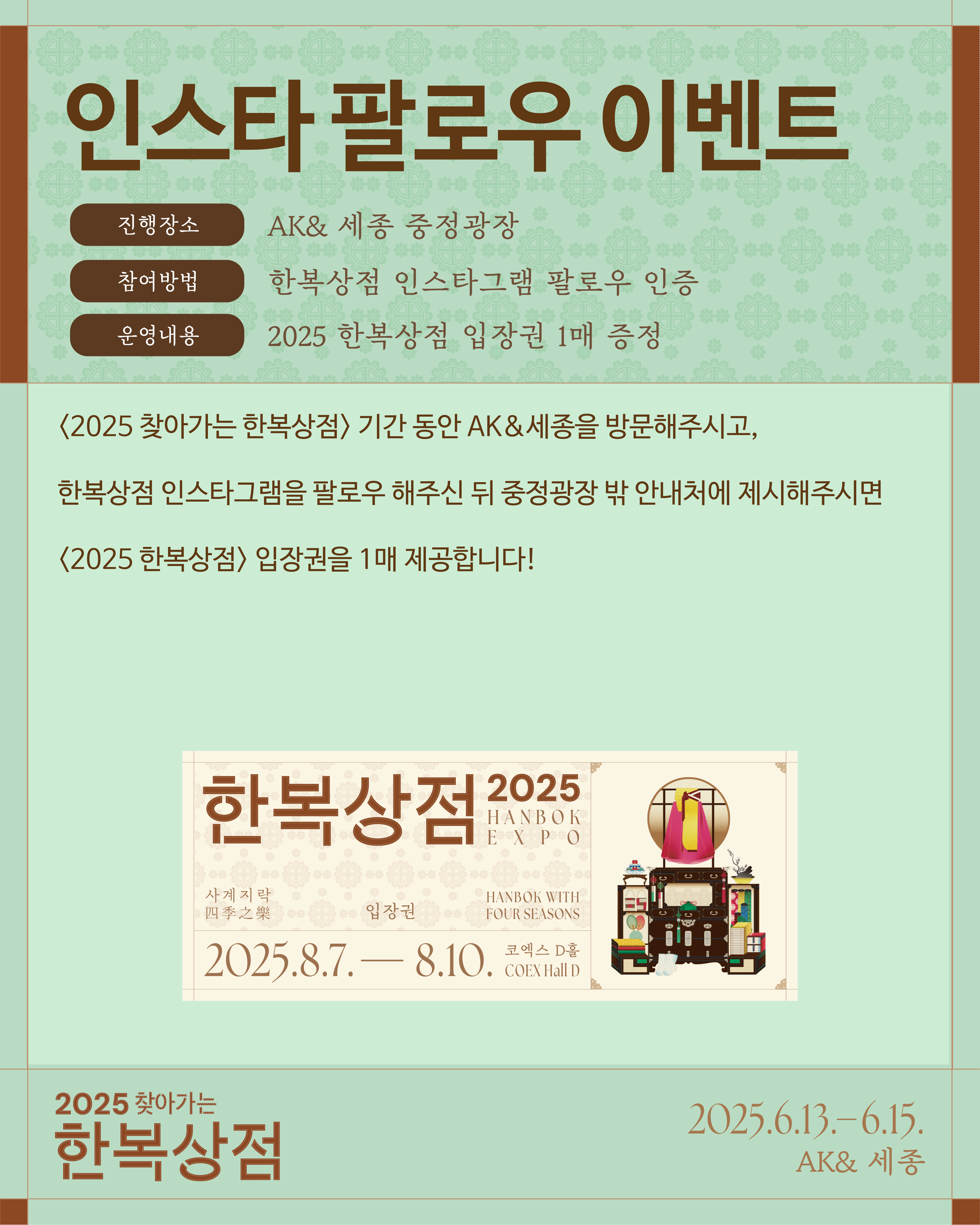 ❤ 행사기간 : 2025년 6월 13일(금) ~ 6월 15일(일), 3일간 10:30~20:30