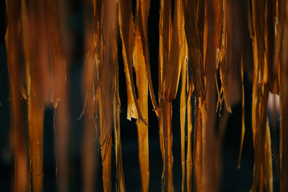 김춘호 닥나무는 원래 1년생을 쓰는 게 좋아요. 물론 묵히면 묵힐수록 껍질이 두꺼워지기 때문에 훨씬 많은 양의 종이를 만들 수 있지만 품질이 떨어지죠. 예전에 저희도 업체에서 오래 묵힌 닥을 사서 만들어 볼까도 싶었는데 막상 받아보니 도저히 못 쓰겠더군요. ‘아, 나는 평생 닥 긁고 살아야 하는 피곤한 팔자인가 보다’ 싶었죠(웃음). 그것들과 저희 닥을 비교해보면 확연히 차이가 납니다. 훨씬 정돈된 느낌이죠.